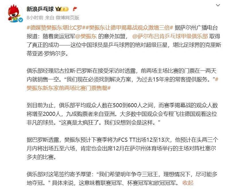 就在比赛前几小时,萨尔布吕肯主场外已排起长队,5200张门票早早售罄,其中八成观众来自中国——有人从北京飞来,有人从伦敦转机,只为亲眼见证“小胖”在欧洲赛场的高光时刻。俱乐部官网一度瘫痪,社交媒体粉丝从几千暴涨至17.5万,连德国媒体都不得不承认:“乒乓球从未有过这样的热度。”
